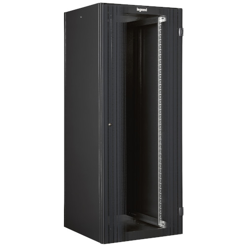 Armários associáveis IP 20 - IK 08.Porta frontal reversível com vidro de segurança. Painéis laterais e traseiros desmontáveis. Fecho dos 4 painéis com chave. Equipado com 2 montantes reguláveis em profundidade. Entrada de cabos com pré-cortes na parte superior e inferior. Pré-corte na parte superior para ventiladores. Pés de nivelamento fornecidos. Carga admissível: 400 kg. Cor antracite: RAL 7016