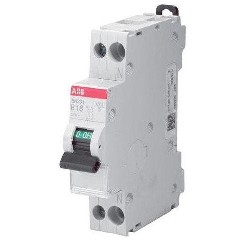 O disjuntor miniatura da série SN201 é um dispositivo 1P+N em 1 módulo para a proteção de circuitos contra sobrecarga e curto-circuito. Neutro está à esquerda.